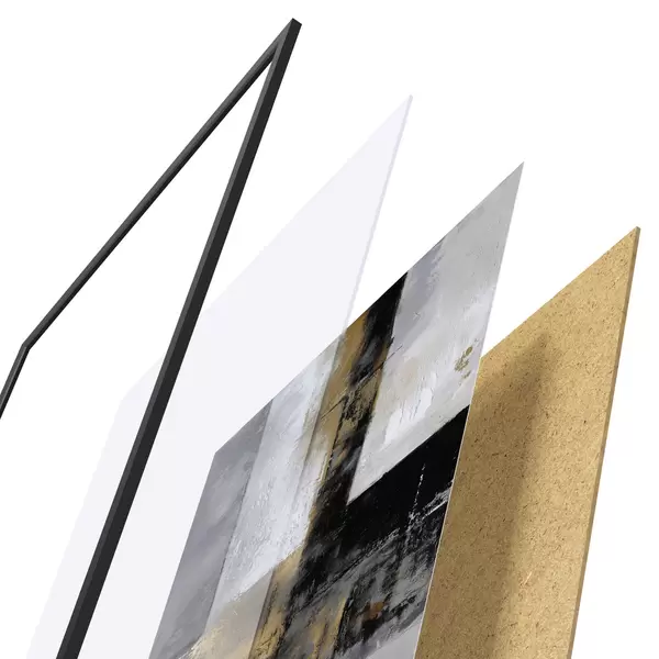 Plagát sa skladá z rámu, plexiskla, vytlačeného obrazu a podkladu z drevotriesky. Plagát možno okamžite zavesiť na stenu vďaka úchytom na zadnej strane.