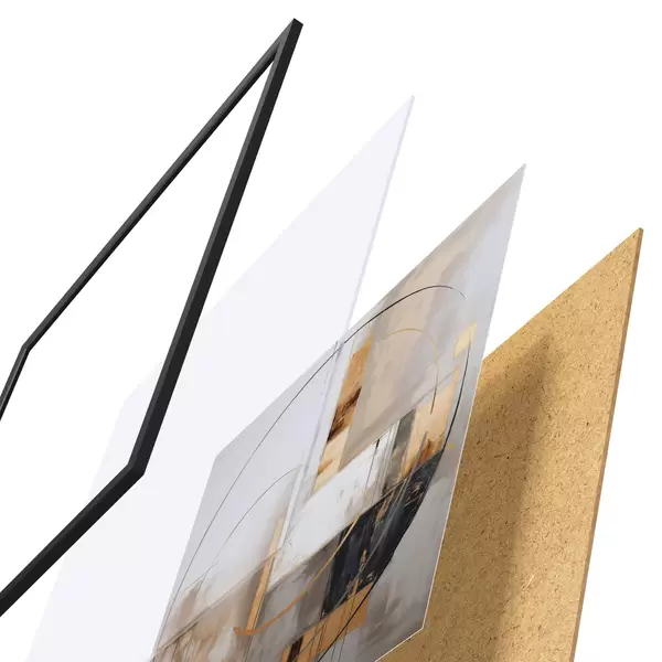 Plagát sa skladá z rámu, plexiskla, vytlačeného obrazu a podkladu z drevotriesky. Plagát možno okamžite zavesiť na stenu vďaka úchytom na zadnej strane.