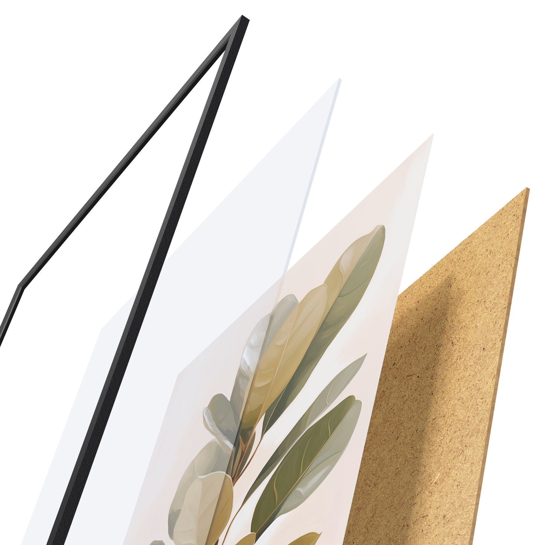 Plagát sa skladá z rámu, plexiskla, vytlačeného obrazu a podkladu z drevotriesky. Plagát možno okamžite zavesiť na stenu vďaka úchytom na zadnej strane.