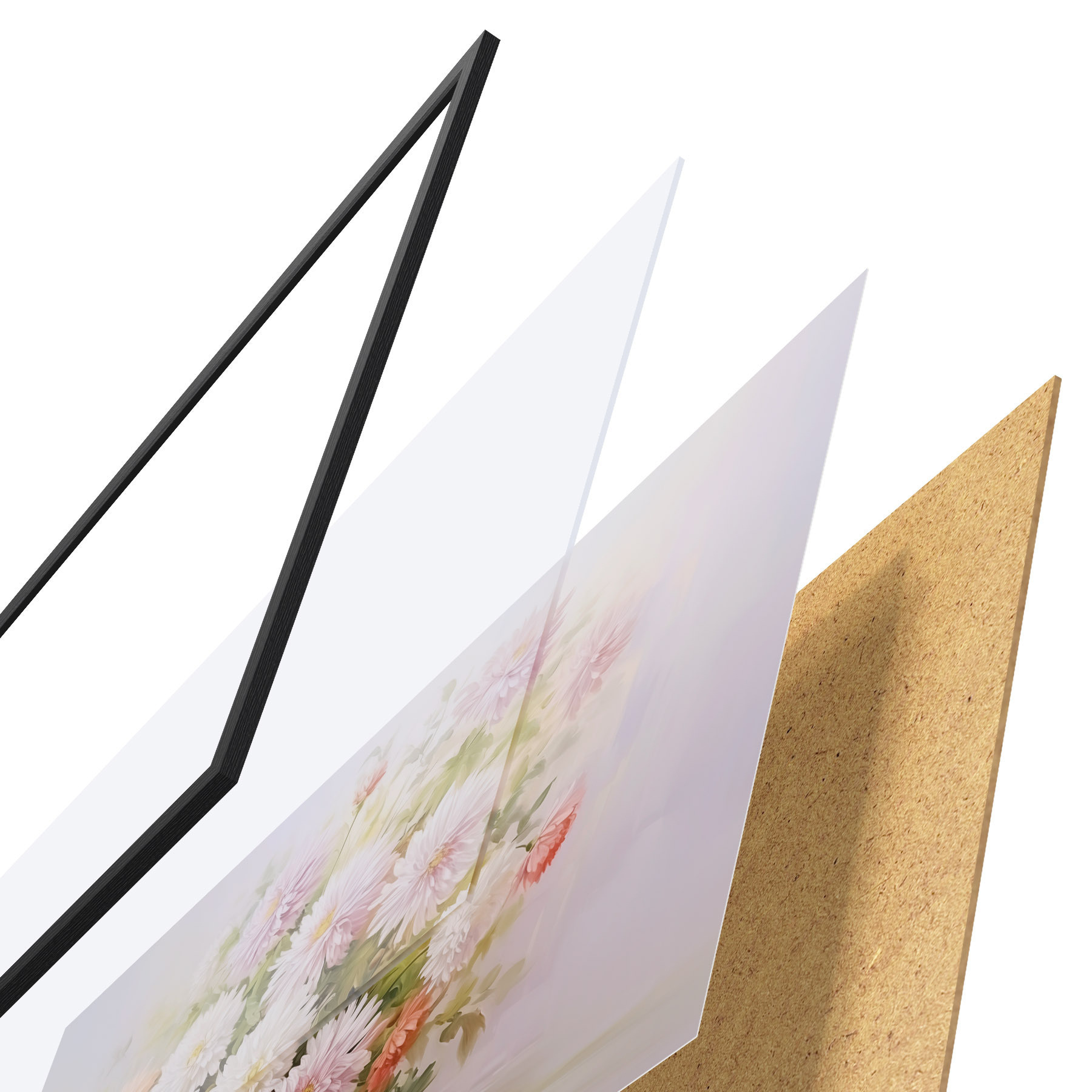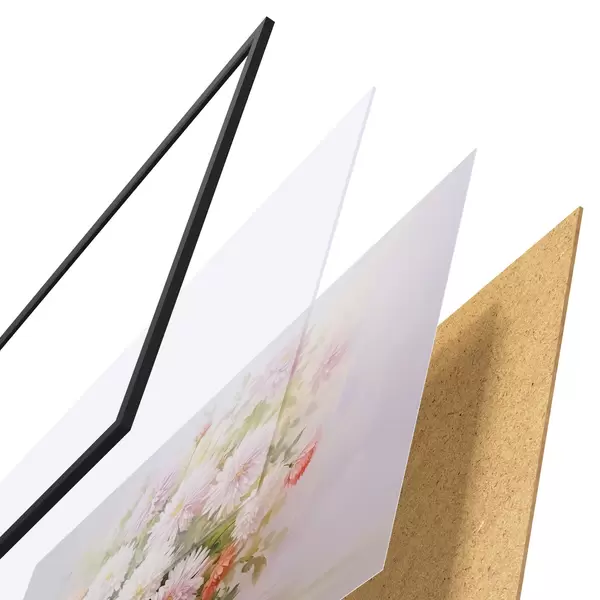 Plagát sa skladá z rámu, plexiskla, vytlačeného obrazu a podkladu z drevotriesky. Plagát možno okamžite zavesiť na stenu vďaka úchytom na zadnej strane.