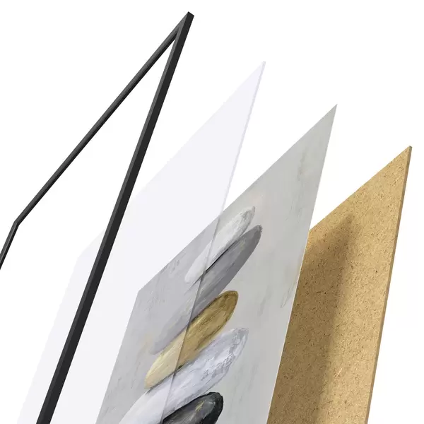 Plagát sa skladá z rámu, plexiskla, vytlačeného obrazu a podkladu z drevotriesky. Plagát možno okamžite zavesiť na stenu vďaka úchytom na zadnej strane.