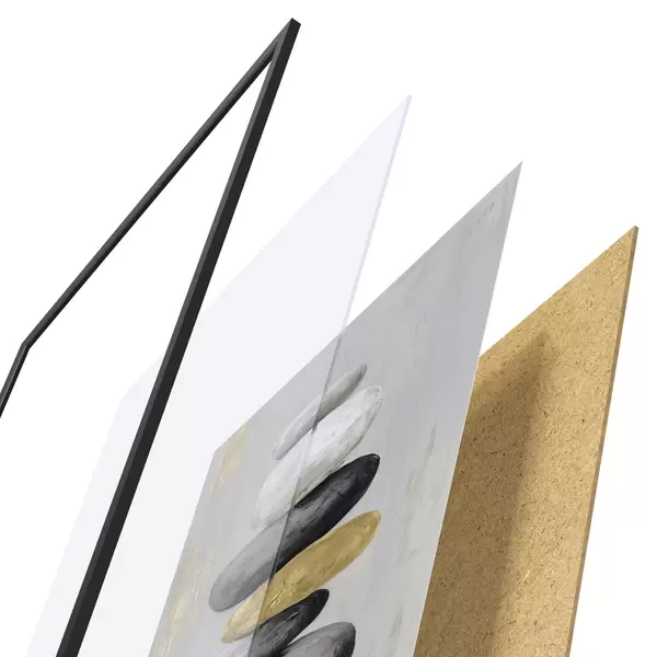 Plagát sa skladá z rámu, plexiskla, vytlačeného obrazu a podkladu z drevotriesky. Plagát možno okamžite zavesiť na stenu vďaka úchytom na zadnej strane.