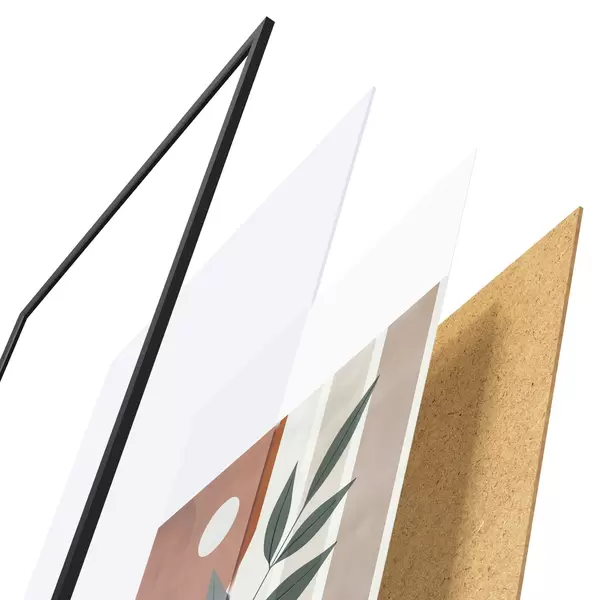 Plagát sa skladá z rámu, plexiskla, vytlačeného obrazu a podkladu z drevotriesky. Plagát možno okamžite zavesiť na stenu vďaka úchytom na zadnej strane.
