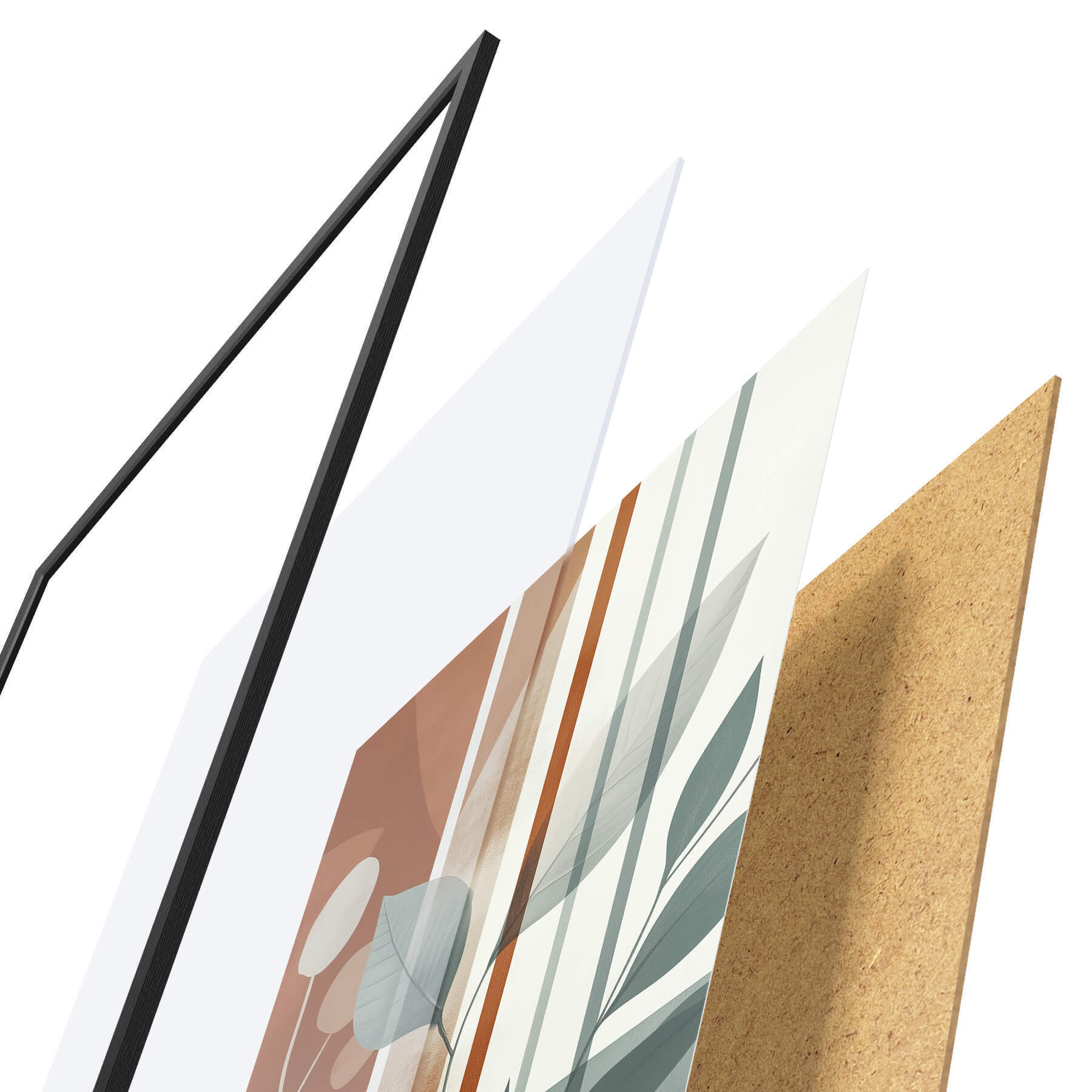Plagát sa skladá z rámu, plexiskla, vytlačeného obrazu a podkladu z drevotriesky. Plagát možno okamžite zavesiť na stenu vďaka úchytom na zadnej strane.