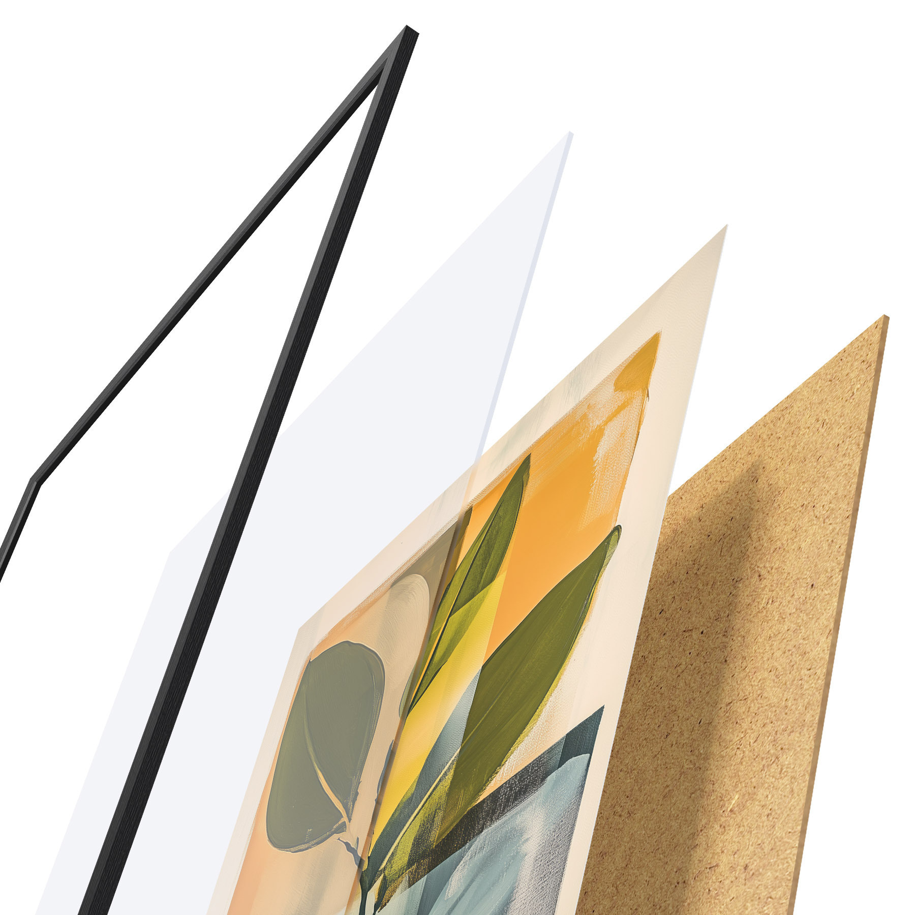 Plagát sa skladá z rámu, plexiskla, vytlačeného obrazu a podkladu z drevotriesky. Plagát možno okamžite zavesiť na stenu vďaka úchytom na zadnej strane.