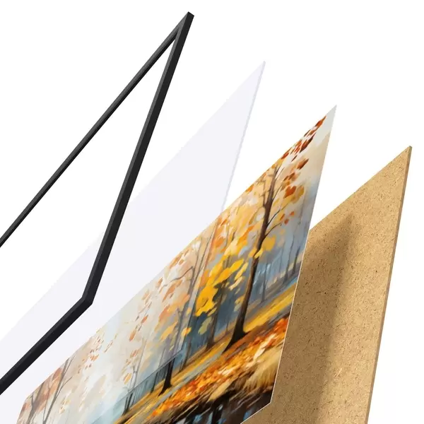 Plagát sa skladá z rámu, plexiskla, vytlačeného obrazu a podkladu z drevotriesky. Plagát možno okamžite zavesiť na stenu vďaka úchytom na zadnej strane.