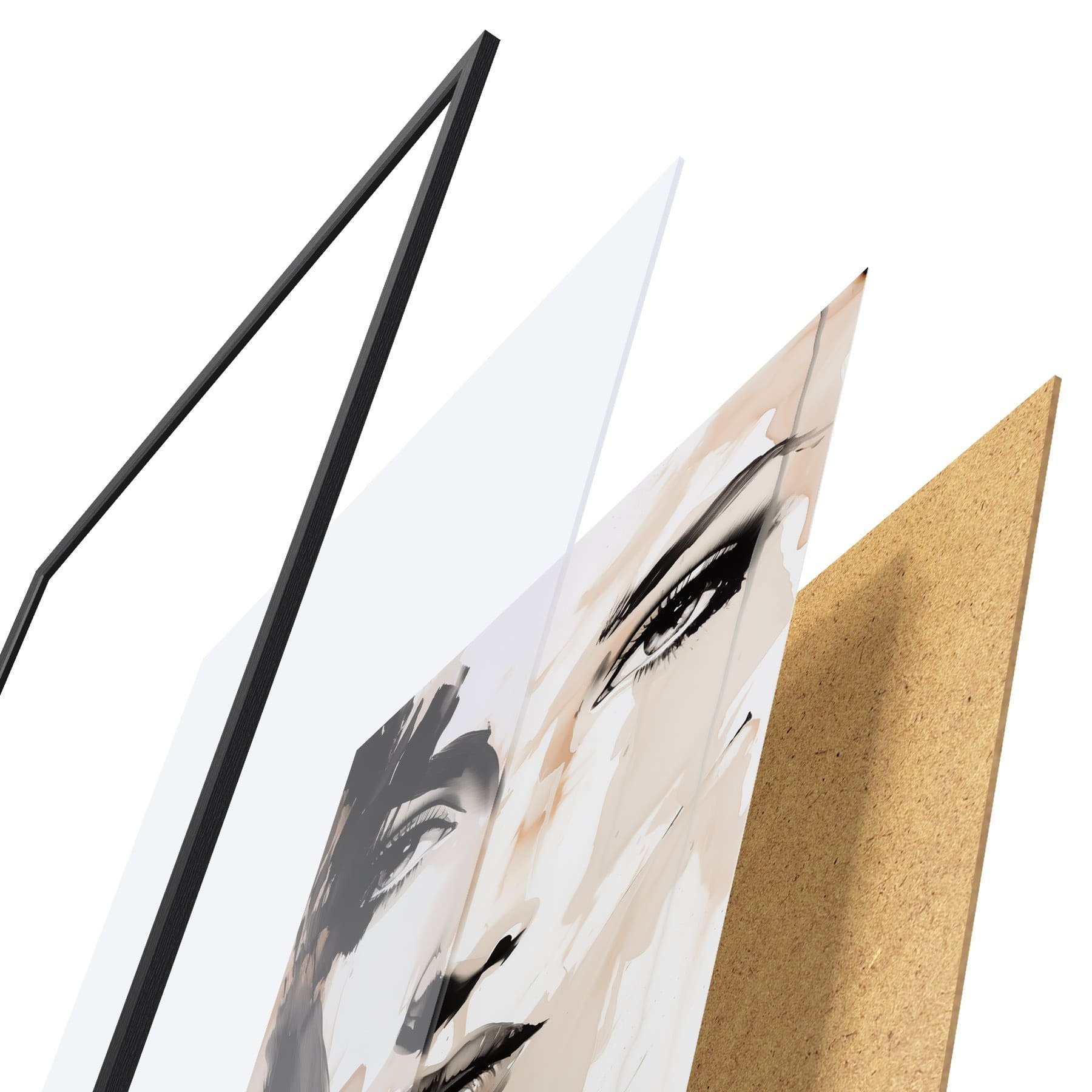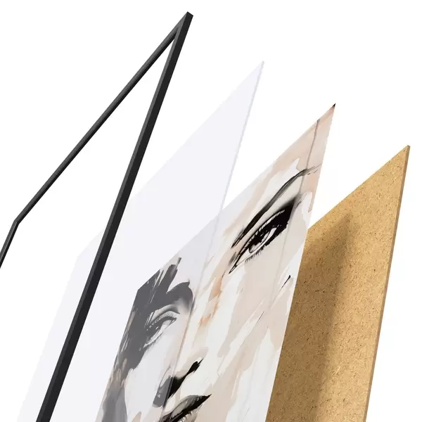 Plagát sa skladá z rámu, plexiskla, vytlačeného obrazu a podkladu z drevotriesky. Plagát možno okamžite zavesiť na stenu vďaka úchytom na zadnej strane.