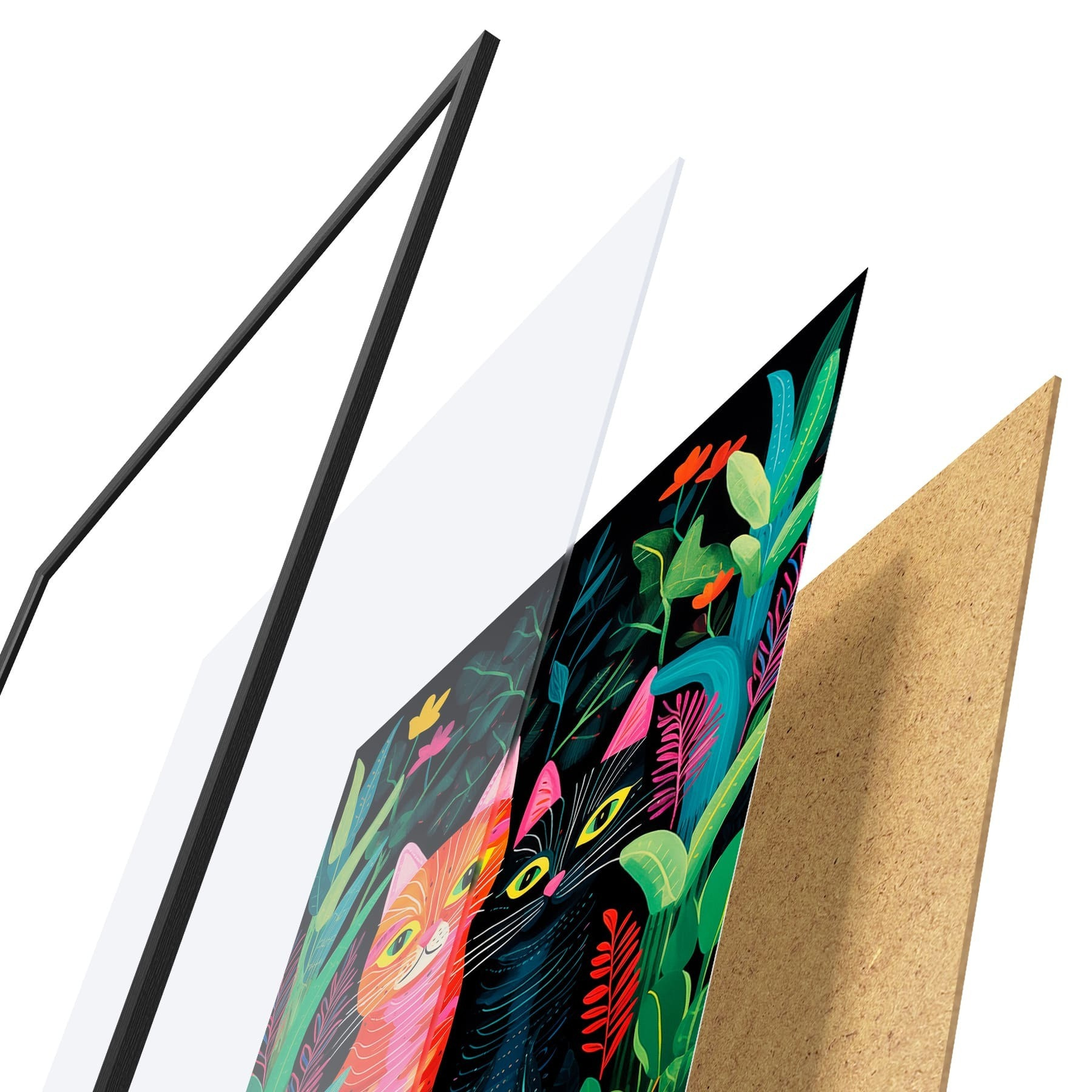 Plagát sa skladá z rámu, plexiskla, vytlačeného obrazu a podkladu z drevotriesky. Plagát možno okamžite zavesiť na stenu vďaka úchytom na zadnej strane.