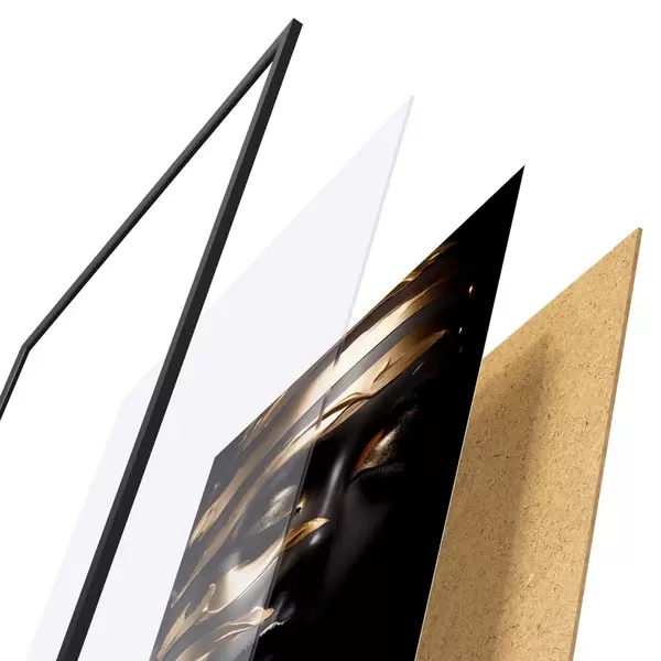 Plagát sa skladá z rámu, plexiskla, vytlačeného obrazu a podkladu z drevotriesky. Plagát možno okamžite zavesiť na stenu vďaka úchytom na zadnej strane.