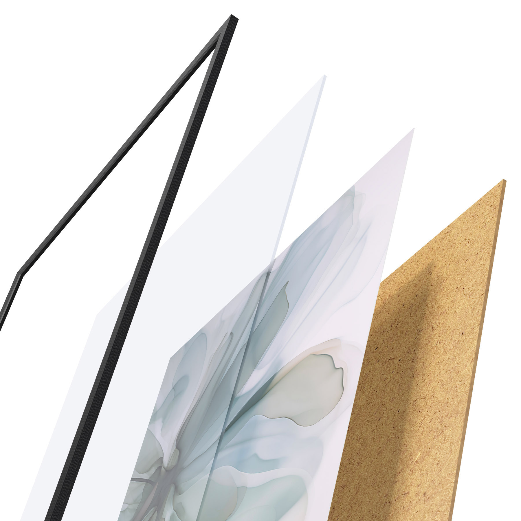 Plagát sa skladá z rámu, plexiskla, vytlačeného obrazu a podkladu z drevotriesky. Plagát možno okamžite zavesiť na stenu vďaka úchytom na zadnej strane.
