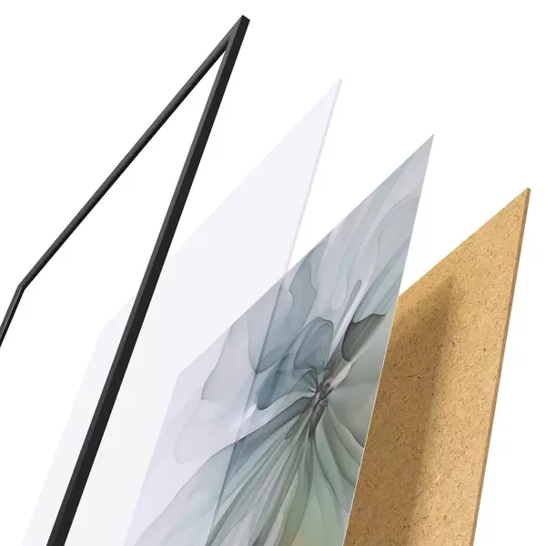 Plagát sa skladá z rámu, plexiskla, vytlačeného obrazu a podkladu z drevotriesky. Plagát možno okamžite zavesiť na stenu vďaka úchytom na zadnej strane.