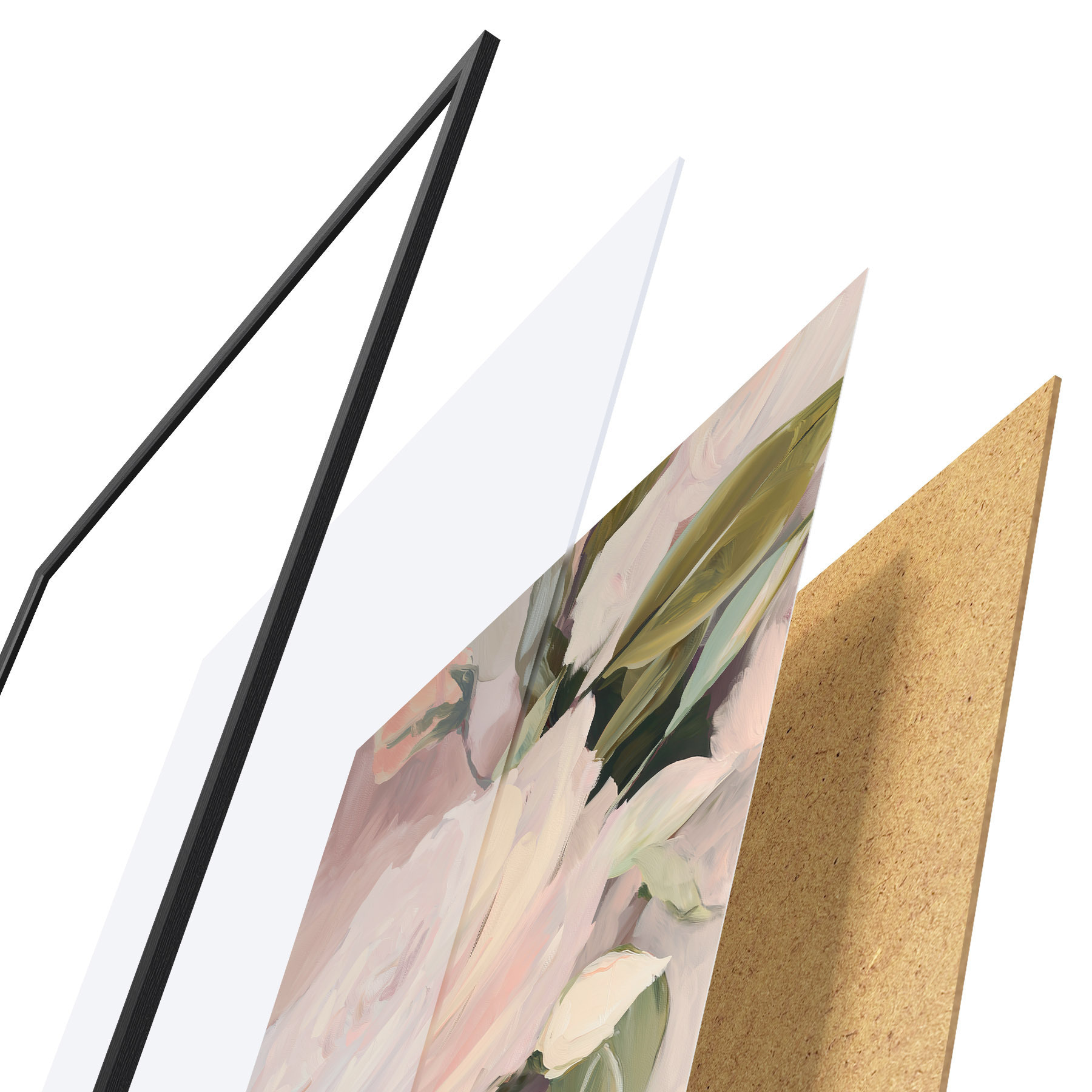 Plagát sa skladá z rámu, plexiskla, vytlačeného obrazu a podkladu z drevotriesky. Plagát možno okamžite zavesiť na stenu vďaka úchytom na zadnej strane.