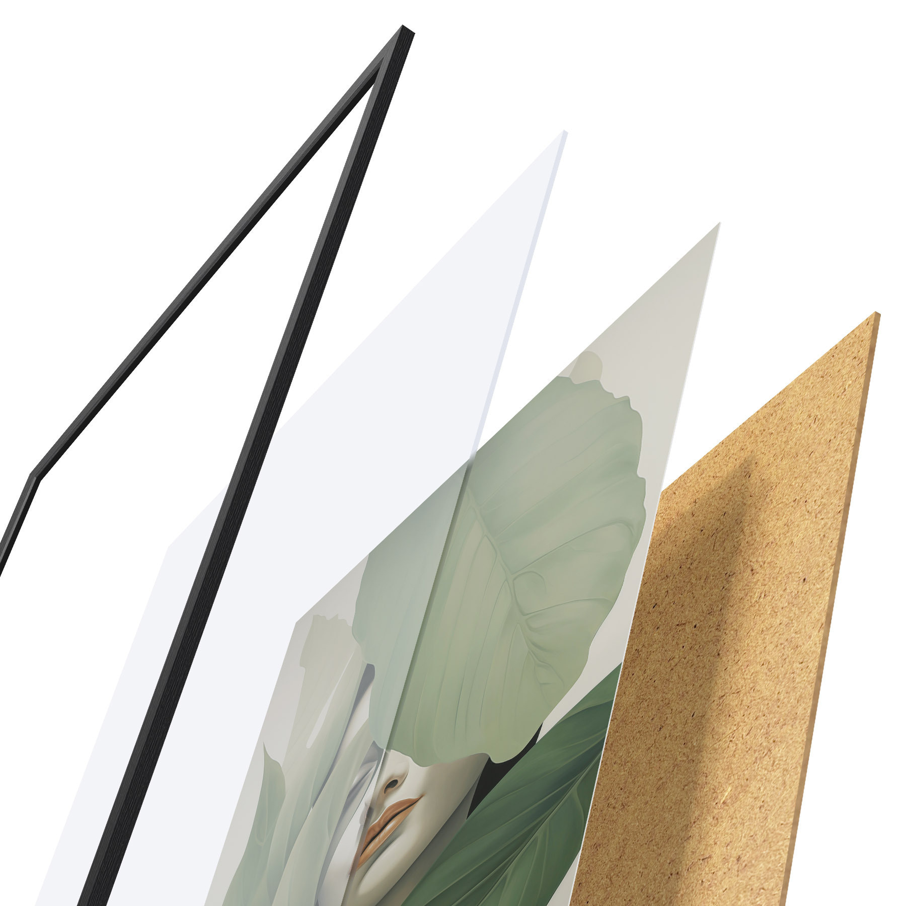 Plagát sa skladá z rámu, plexiskla, vytlačeného obrazu a podkladu z drevotriesky. Plagát možno okamžite zavesiť na stenu vďaka úchytom na zadnej strane.