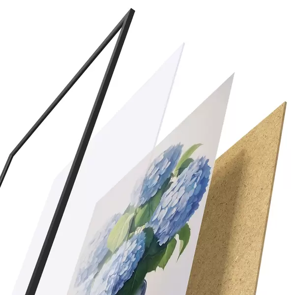 Plagát sa skladá z rámu, plexiskla, vytlačeného obrazu a podkladu z drevotriesky. Plagát možno okamžite zavesiť na stenu vďaka úchytom na zadnej strane.