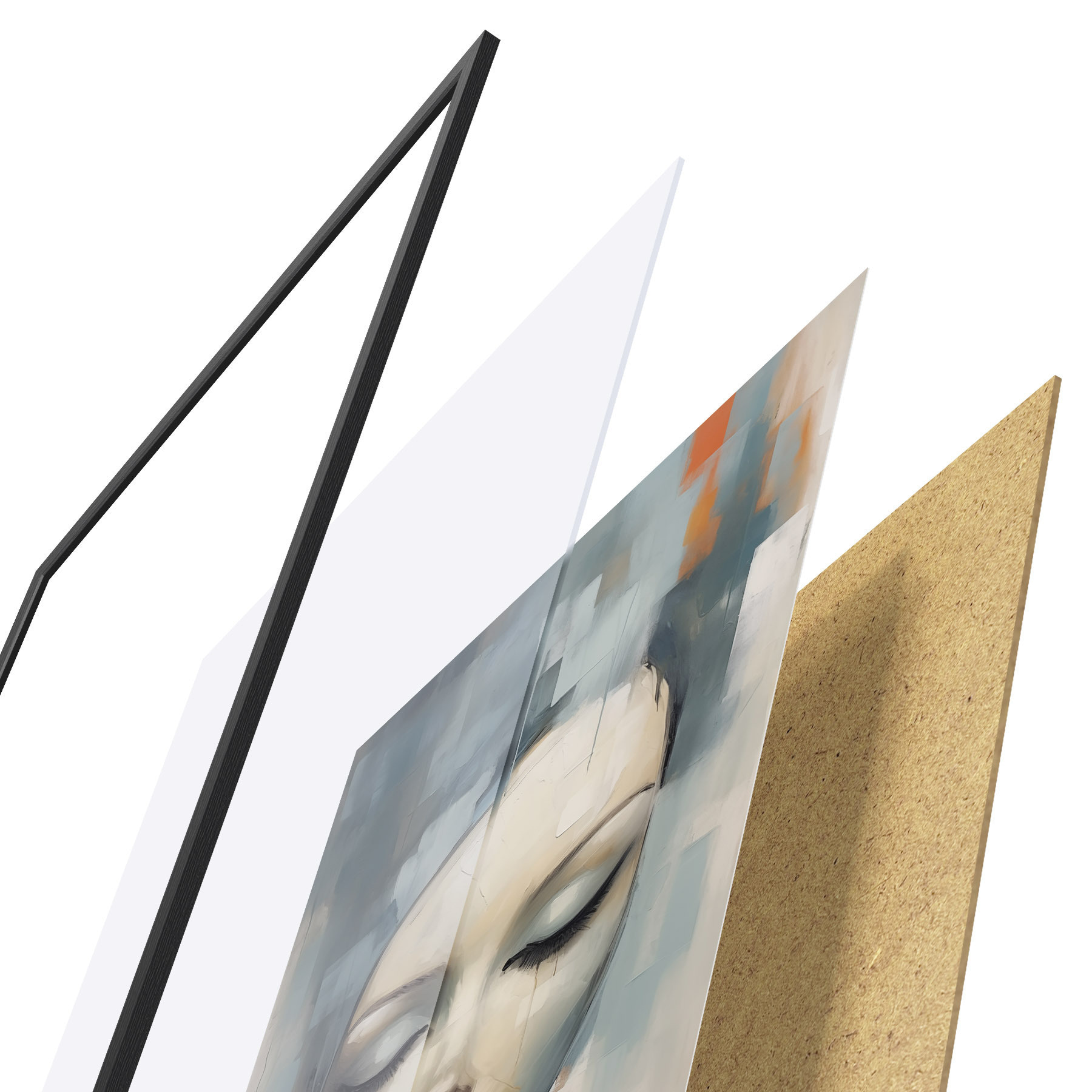 Plagát sa skladá z rámu, plexiskla, vytlačeného obrazu a podkladu z drevotriesky. Plagát možno okamžite zavesiť na stenu vďaka úchytom na zadnej strane.