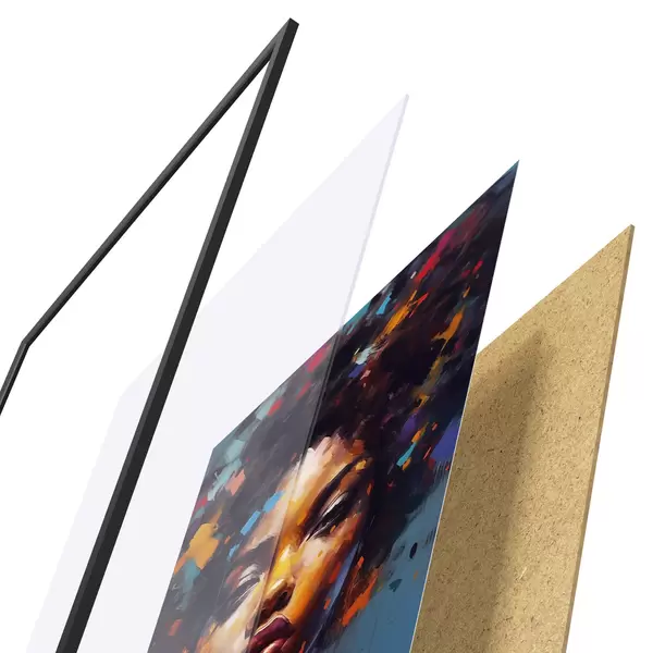 Plagát sa skladá z rámu, plexiskla, vytlačeného obrazu a podkladu z drevotriesky. Plagát možno okamžite zavesiť na stenu vďaka úchytom na zadnej strane.