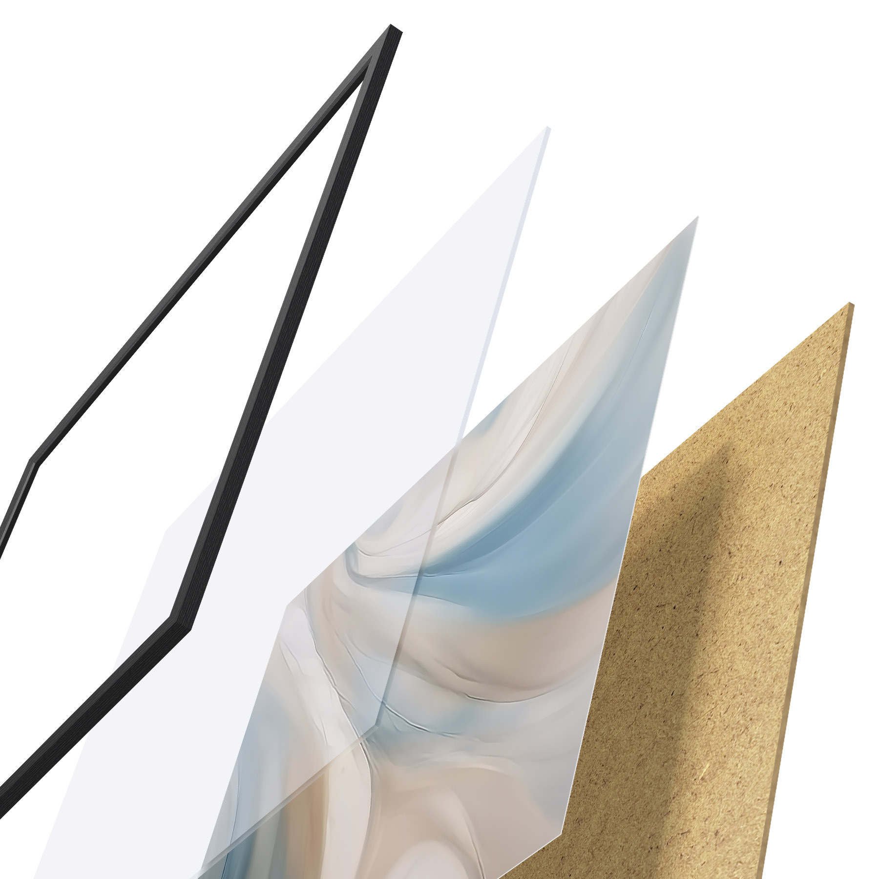 Plagát sa skladá z rámu, plexiskla, vytlačeného obrazu a podkladu z drevotriesky. Plagát možno okamžite zavesiť na stenu vďaka úchytom na zadnej strane.