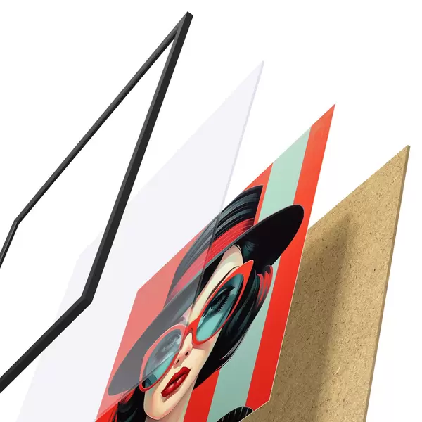Plagát sa skladá z rámu, plexiskla, vytlačeného obrazu a podkladu z drevotriesky. Plagát možno okamžite zavesiť na stenu vďaka úchytom na zadnej strane.