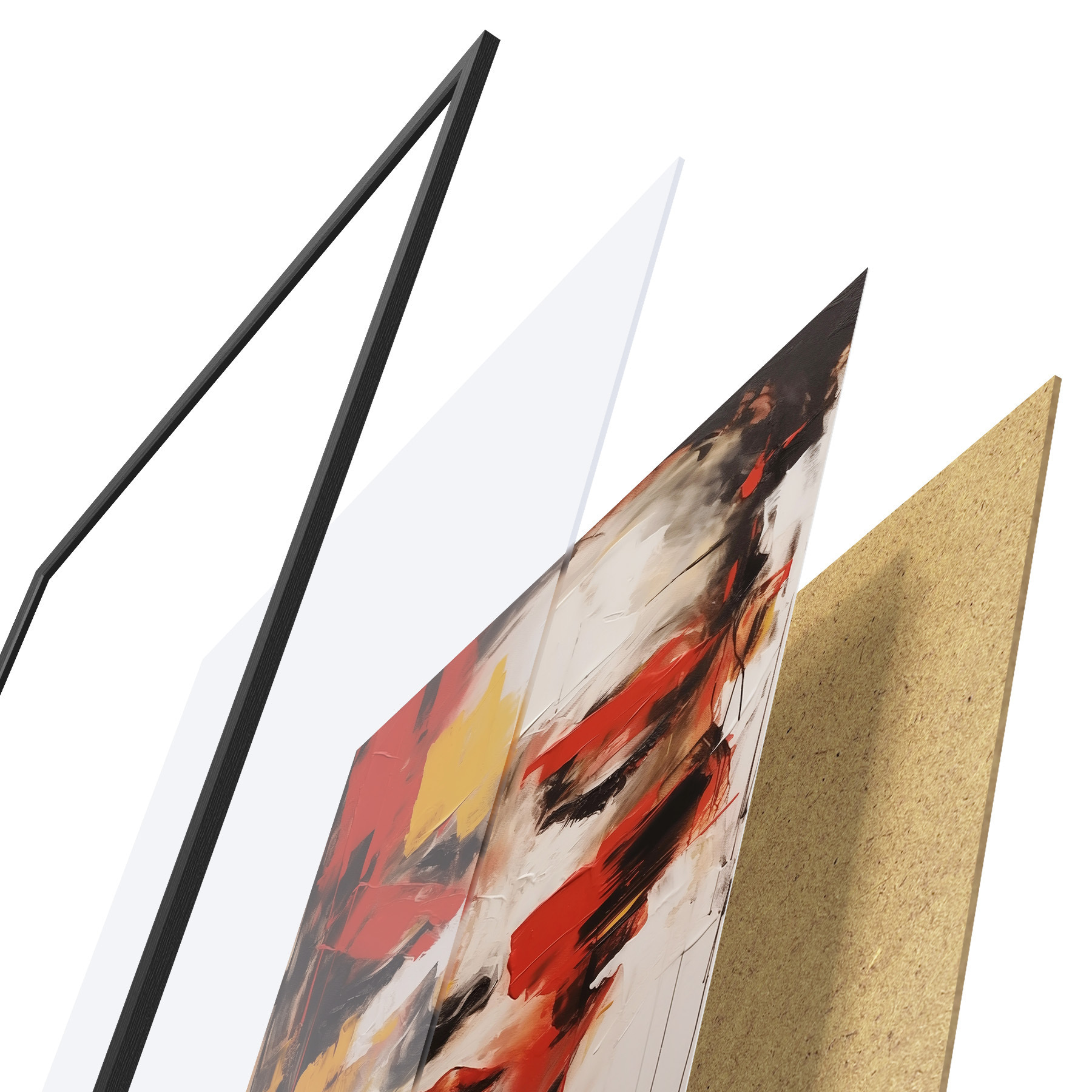 Plagát sa skladá z rámu, plexiskla, vytlačeného obrazu a podkladu z drevotriesky. Plagát možno okamžite zavesiť na stenu vďaka úchytom na zadnej strane.