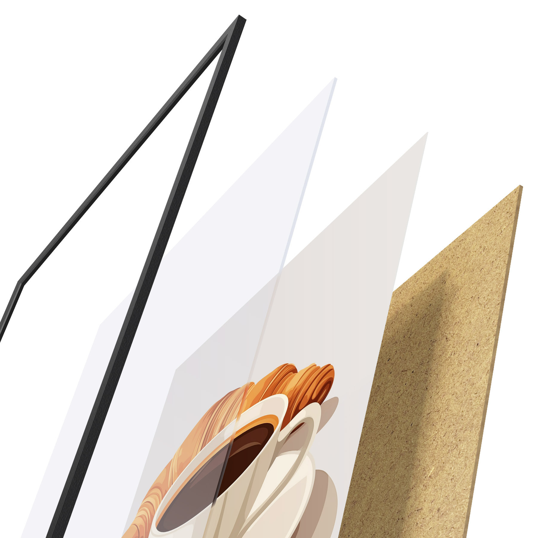 Plagát sa skladá z rámu, plexiskla, vytlačeného obrazu a podkladu z drevotriesky. Plagát možno okamžite zavesiť na stenu vďaka úchytom na zadnej strane.
