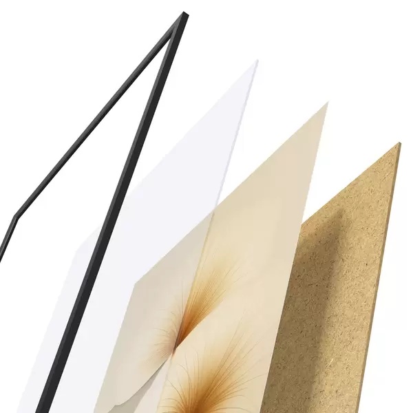 Plagát sa skladá z rámu, plexiskla, vytlačeného obrazu a podkladu z drevotriesky. Plagát možno okamžite zavesiť na stenu vďaka úchytom na zadnej strane.