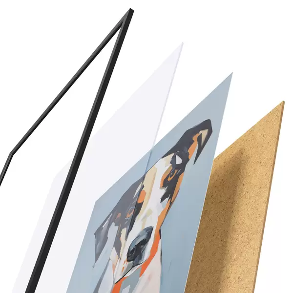Plagát sa skladá z rámu, plexiskla, vytlačeného obrazu a podkladu z drevotriesky. Plagát možno okamžite zavesiť na stenu vďaka úchytom na zadnej strane.