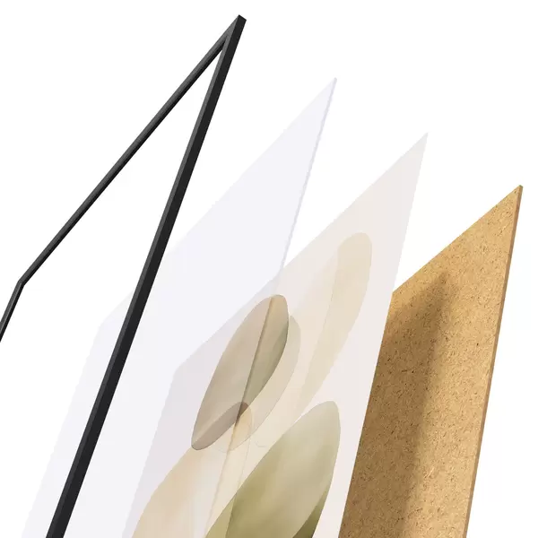 Plagát sa skladá z rámu, plexiskla, vytlačeného obrazu a podkladu z drevotriesky. Plagát možno okamžite zavesiť na stenu vďaka úchytom na zadnej strane.