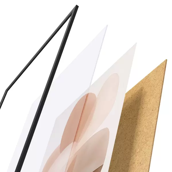 Plagát sa skladá z rámu, plexiskla, vytlačeného obrazu a podkladu z drevotriesky. Plagát možno okamžite zavesiť na stenu vďaka úchytom na zadnej strane.