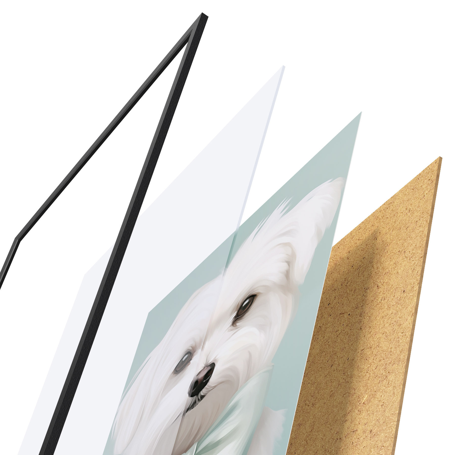 Plagát sa skladá z rámu, plexiskla, vytlačeného obrazu a podkladu z drevotriesky. Plagát možno okamžite zavesiť na stenu vďaka úchytom na zadnej strane.