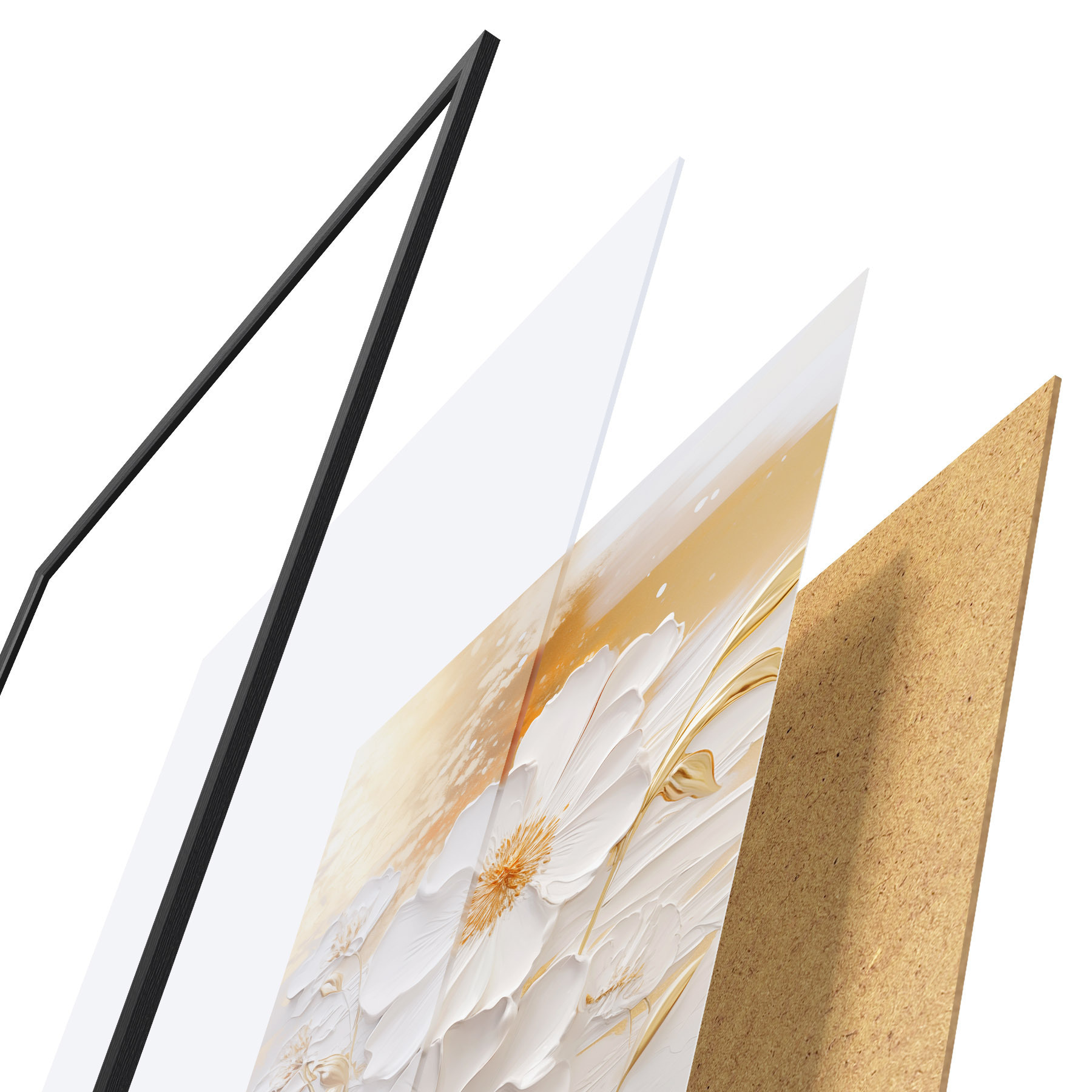 Plagát sa skladá z rámu, plexiskla, vytlačeného obrazu a podkladu z drevotriesky. Plagát možno okamžite zavesiť na stenu vďaka úchytom na zadnej strane.