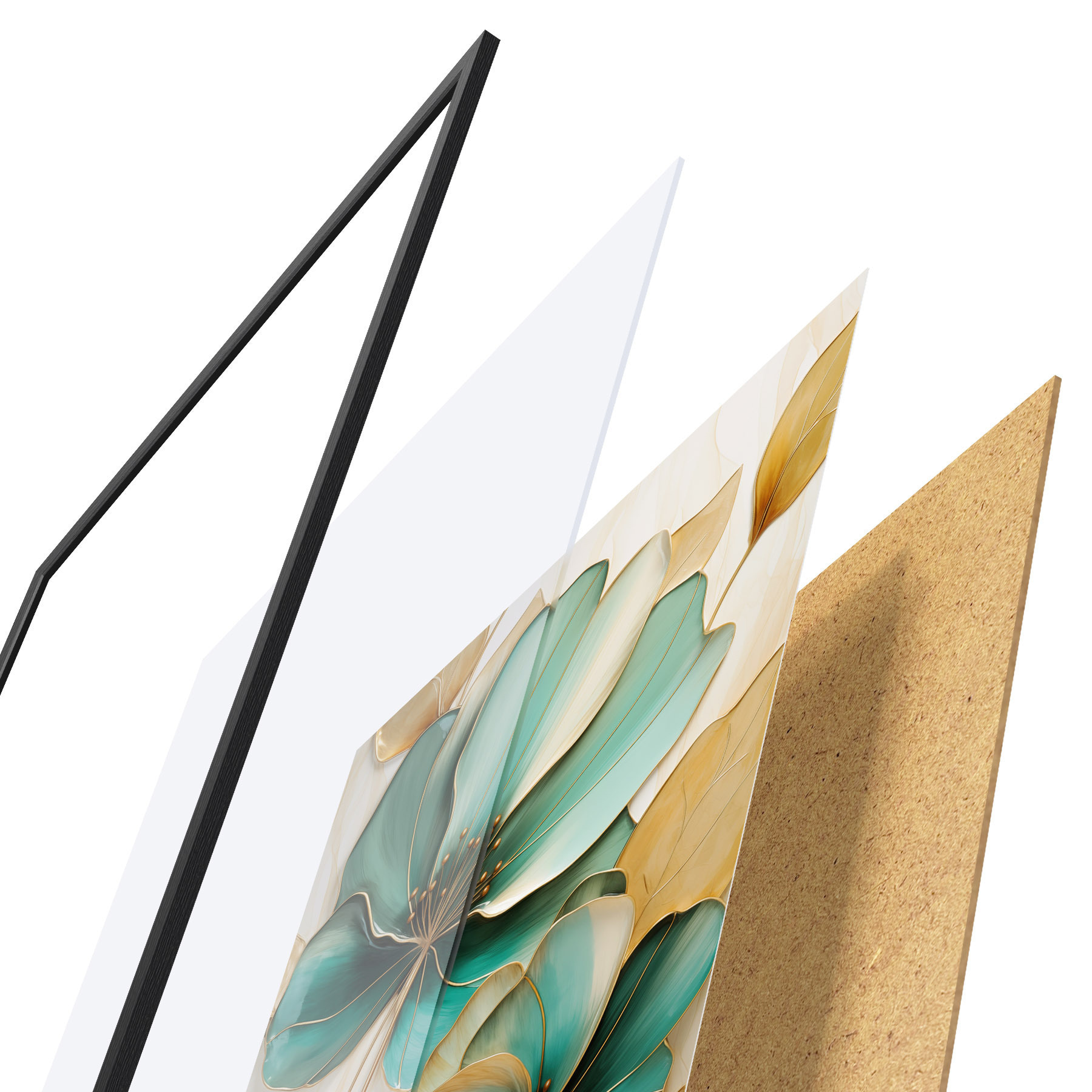 Plagát sa skladá z rámu, plexiskla, vytlačeného obrazu a podkladu z drevotriesky. Plagát možno okamžite zavesiť na stenu vďaka úchytom na zadnej strane.