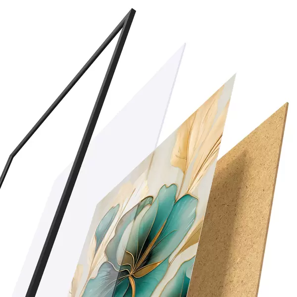 Plagát sa skladá z rámu, plexiskla, vytlačeného obrazu a podkladu z drevotriesky. Plagát možno okamžite zavesiť na stenu vďaka úchytom na zadnej strane.