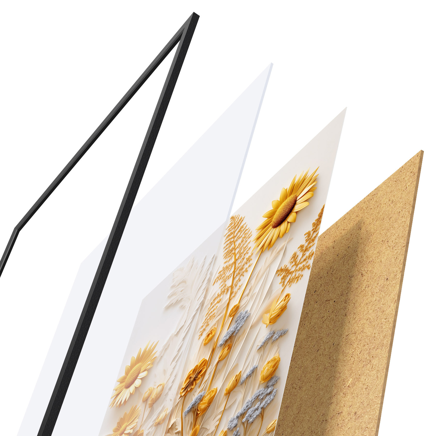Plagát sa skladá z rámu, plexiskla, vytlačeného obrazu a podkladu z drevotriesky. Plagát možno okamžite zavesiť na stenu vďaka úchytom na zadnej strane.