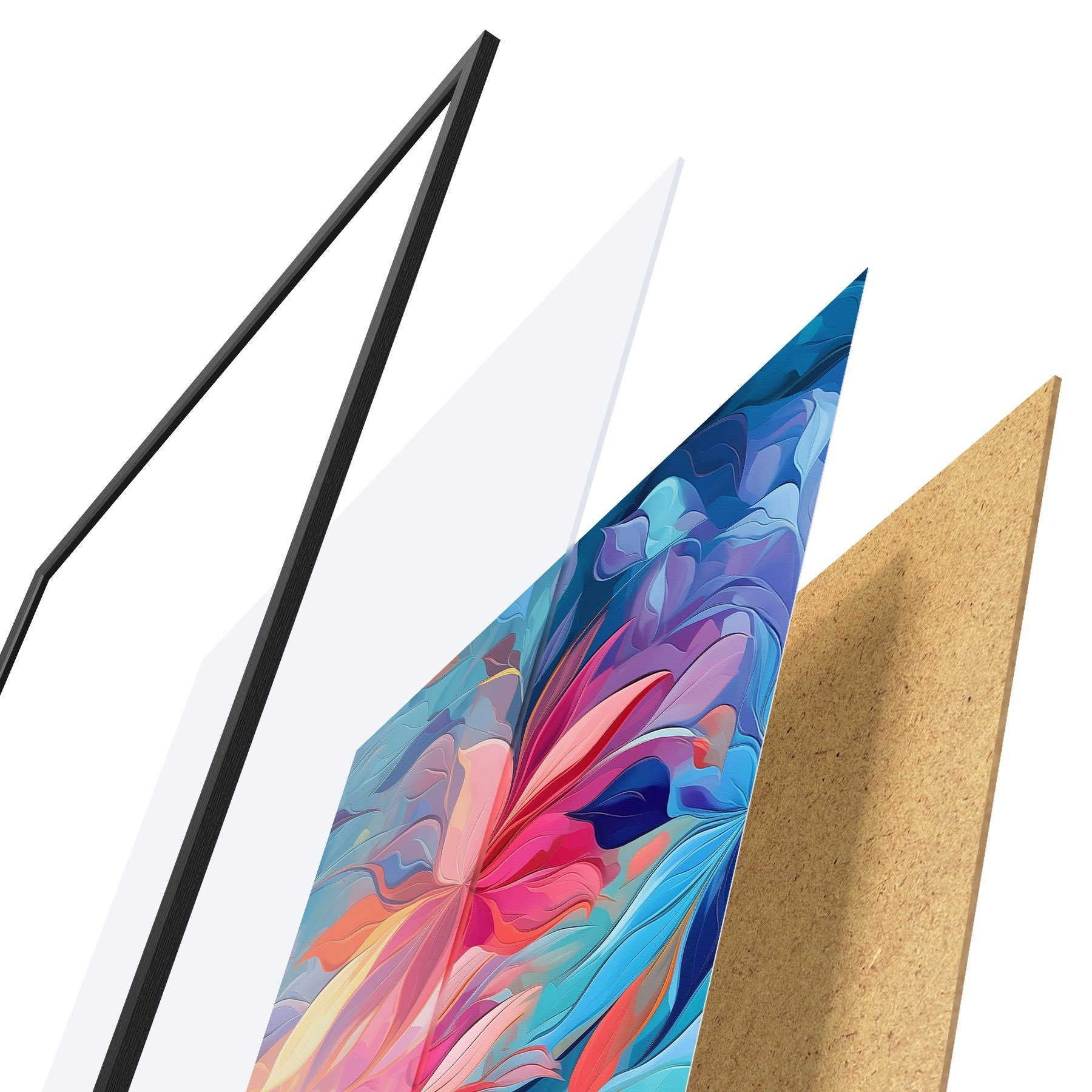 Plagát sa skladá z rámu, plexiskla, vytlačeného obrazu a podkladu z drevotriesky. Plagát možno okamžite zavesiť na stenu vďaka úchytom na zadnej strane.