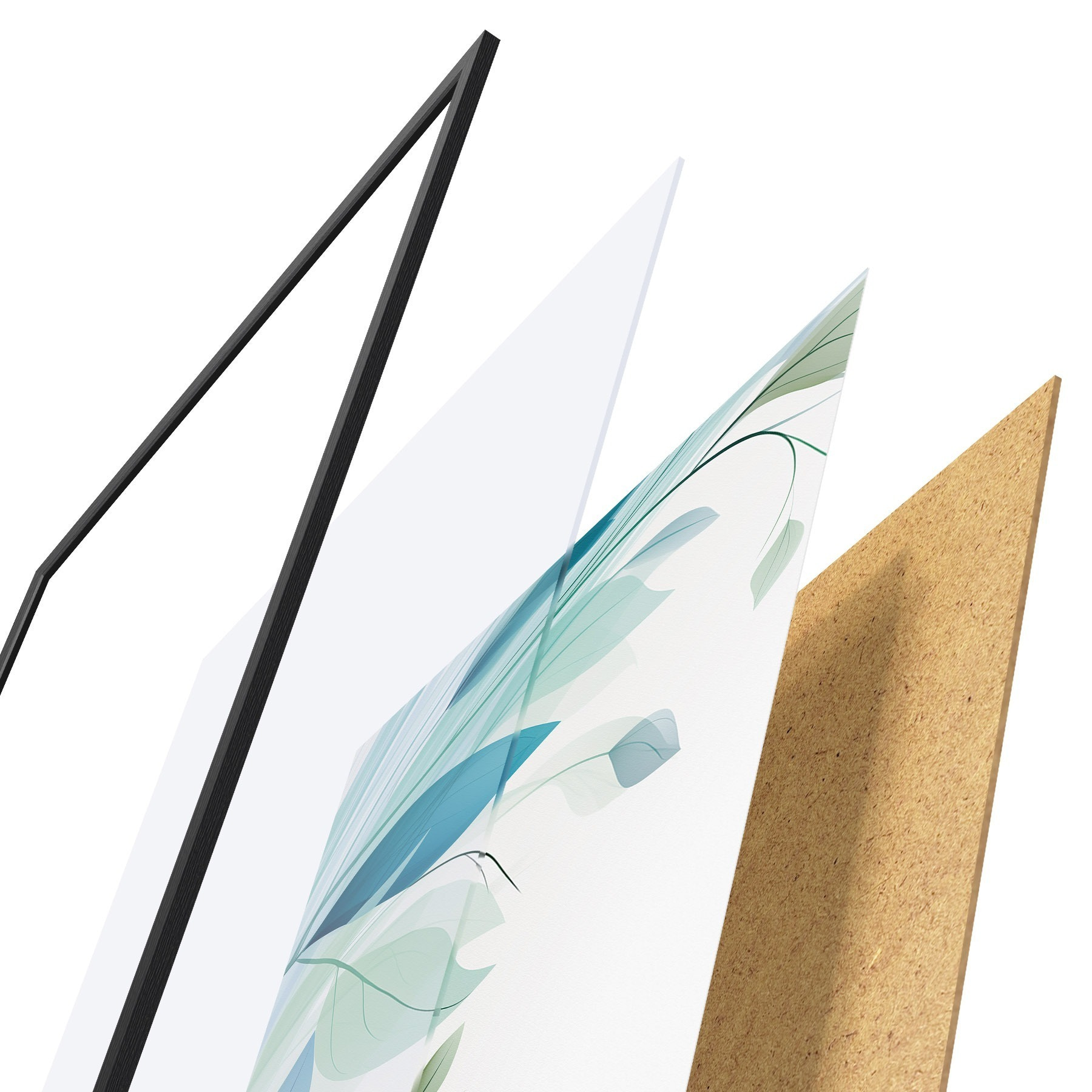 Plagát sa skladá z rámu, plexiskla, vytlačeného obrazu a podkladu z drevotriesky. Plagát možno okamžite zavesiť na stenu vďaka úchytom na zadnej strane.