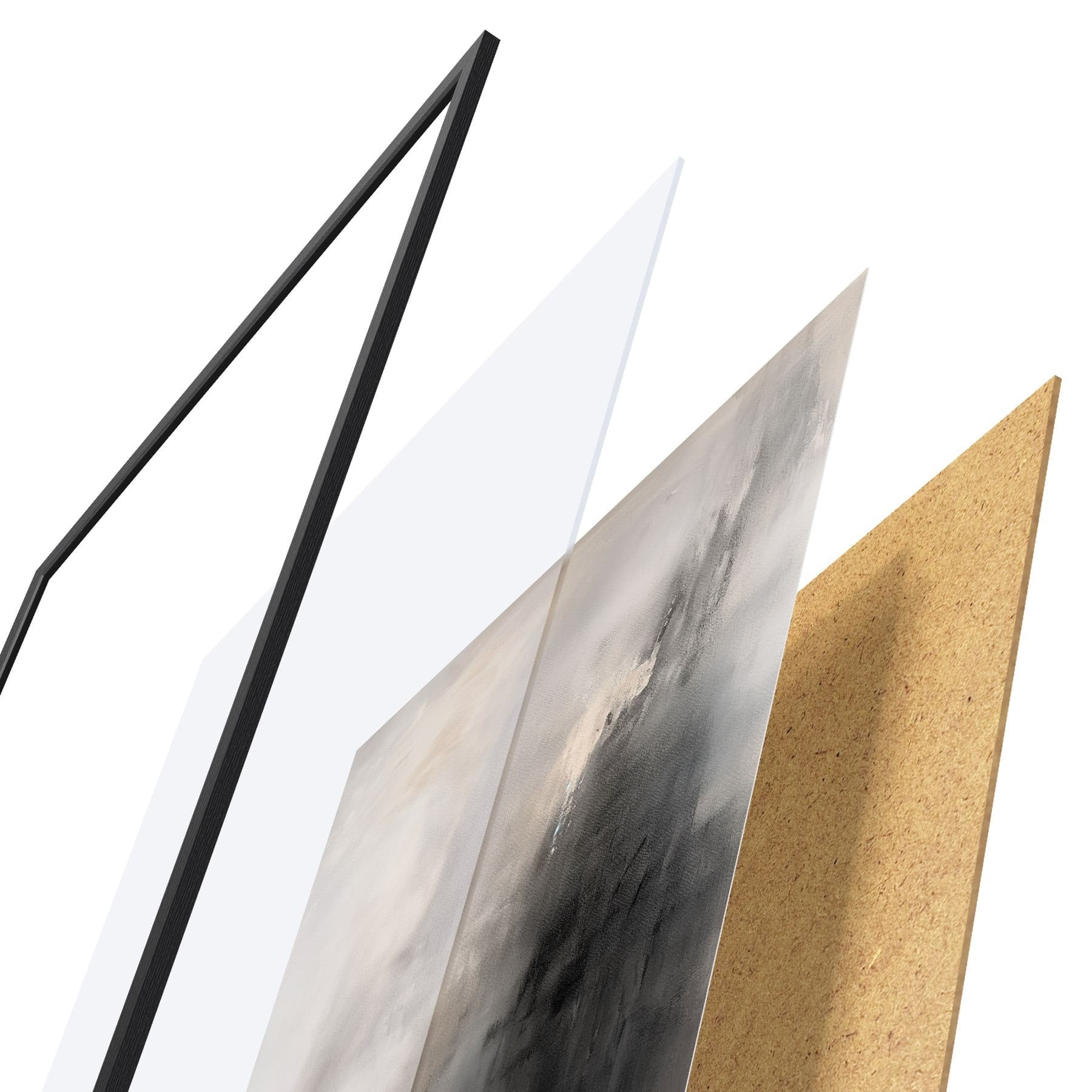 Plagát sa skladá z rámu, plexiskla, vytlačeného obrazu a podkladu z drevotriesky. Plagát možno okamžite zavesiť na stenu vďaka úchytom na zadnej strane.