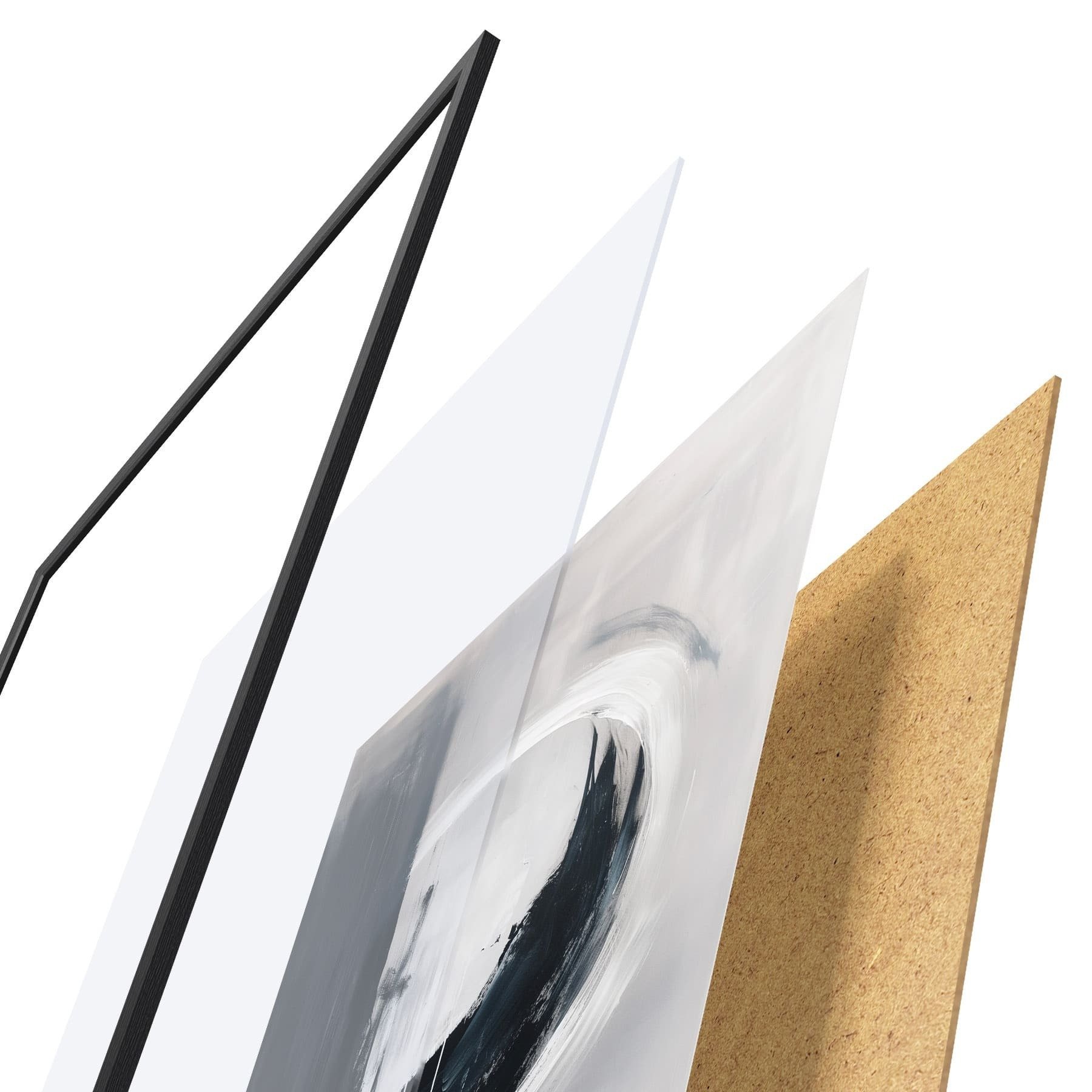Plagát sa skladá z rámu, plexiskla, vytlačeného obrazu a podkladu z drevotriesky. Plagát možno okamžite zavesiť na stenu vďaka úchytom na zadnej strane.
