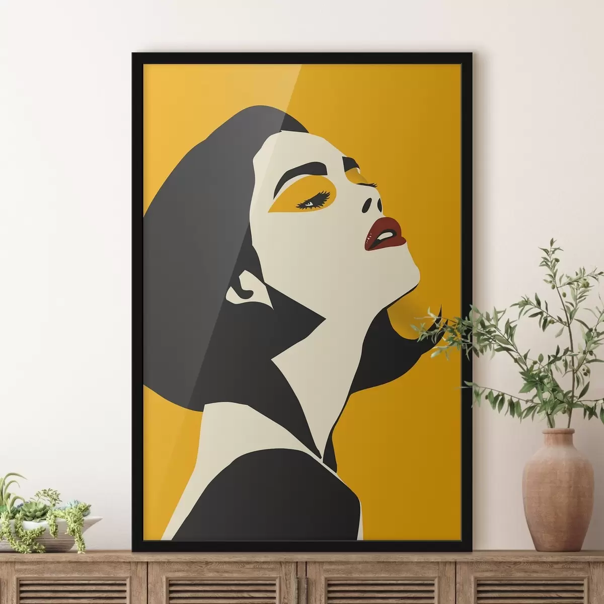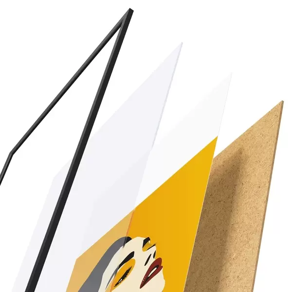 Plagát sa skladá z rámu, plexiskla, vytlačeného obrazu a podkladu z drevotriesky. Plagát možno okamžite zavesiť na stenu vďaka úchytom na zadnej strane.
