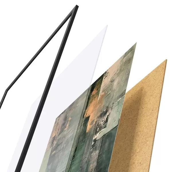 Plagát sa skladá z rámu, plexiskla, vytlačeného obrazu a podkladu z drevotriesky. Plagát možno okamžite zavesiť na stenu vďaka úchytom na zadnej strane.