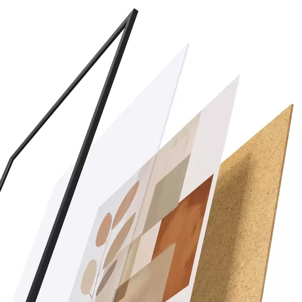 Plagát sa skladá z rámu, plexiskla, vytlačeného obrazu a podkladu z drevotriesky. Plagát možno okamžite zavesiť na stenu vďaka úchytom na zadnej strane.