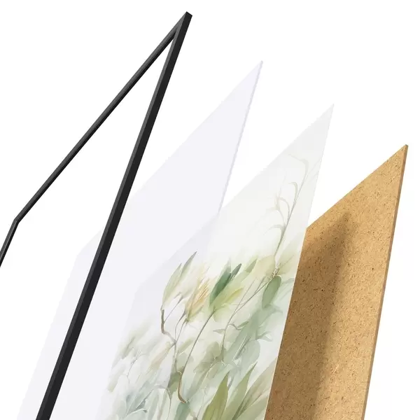 Plagát sa skladá z rámu, plexiskla, vytlačeného obrazu a podkladu z drevotriesky. Plagát možno okamžite zavesiť na stenu vďaka úchytom na zadnej strane.