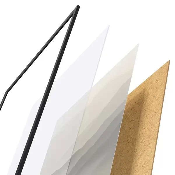 Plagát sa skladá z rámu, plexiskla, vytlačeného obrazu a podkladu z drevotriesky. Plagát možno okamžite zavesiť na stenu vďaka úchytom na zadnej strane.