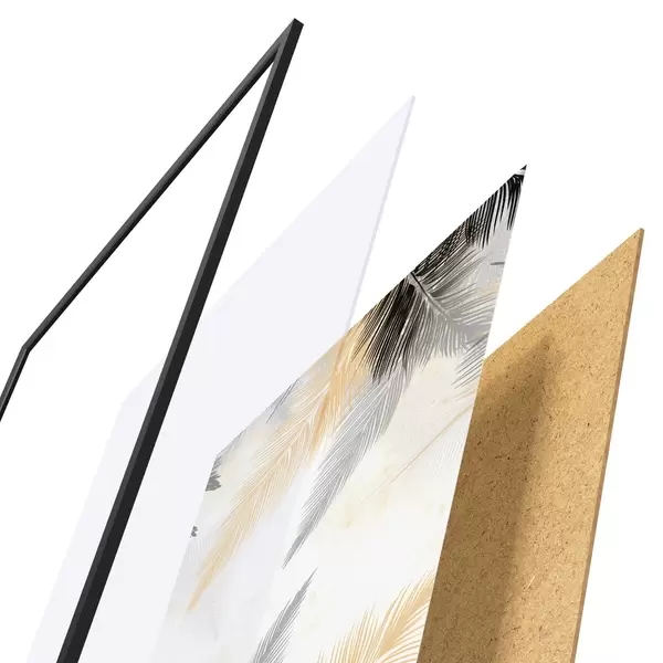 Plagát sa skladá z rámu, plexiskla, vytlačeného obrazu a podkladu z drevotriesky. Plagát možno okamžite zavesiť na stenu vďaka úchytom na zadnej strane.