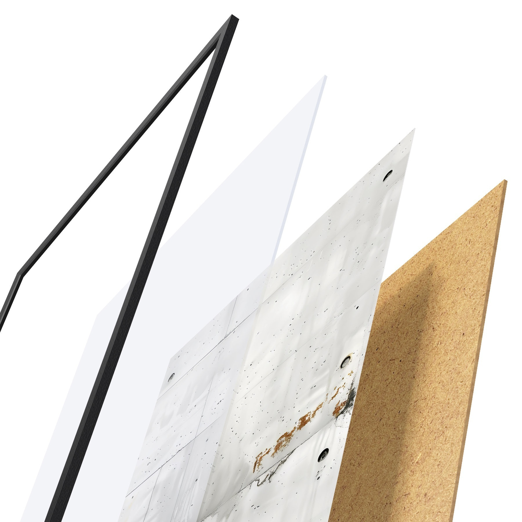Plagát sa skladá z rámu, plexiskla, vytlačeného obrazu a podkladu z drevotriesky. Plagát možno okamžite zavesiť na stenu vďaka úchytom na zadnej strane.