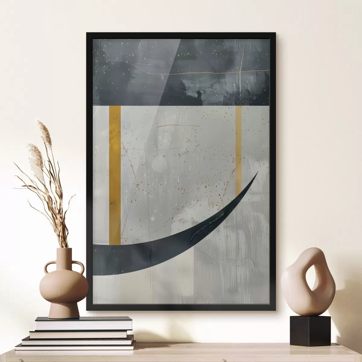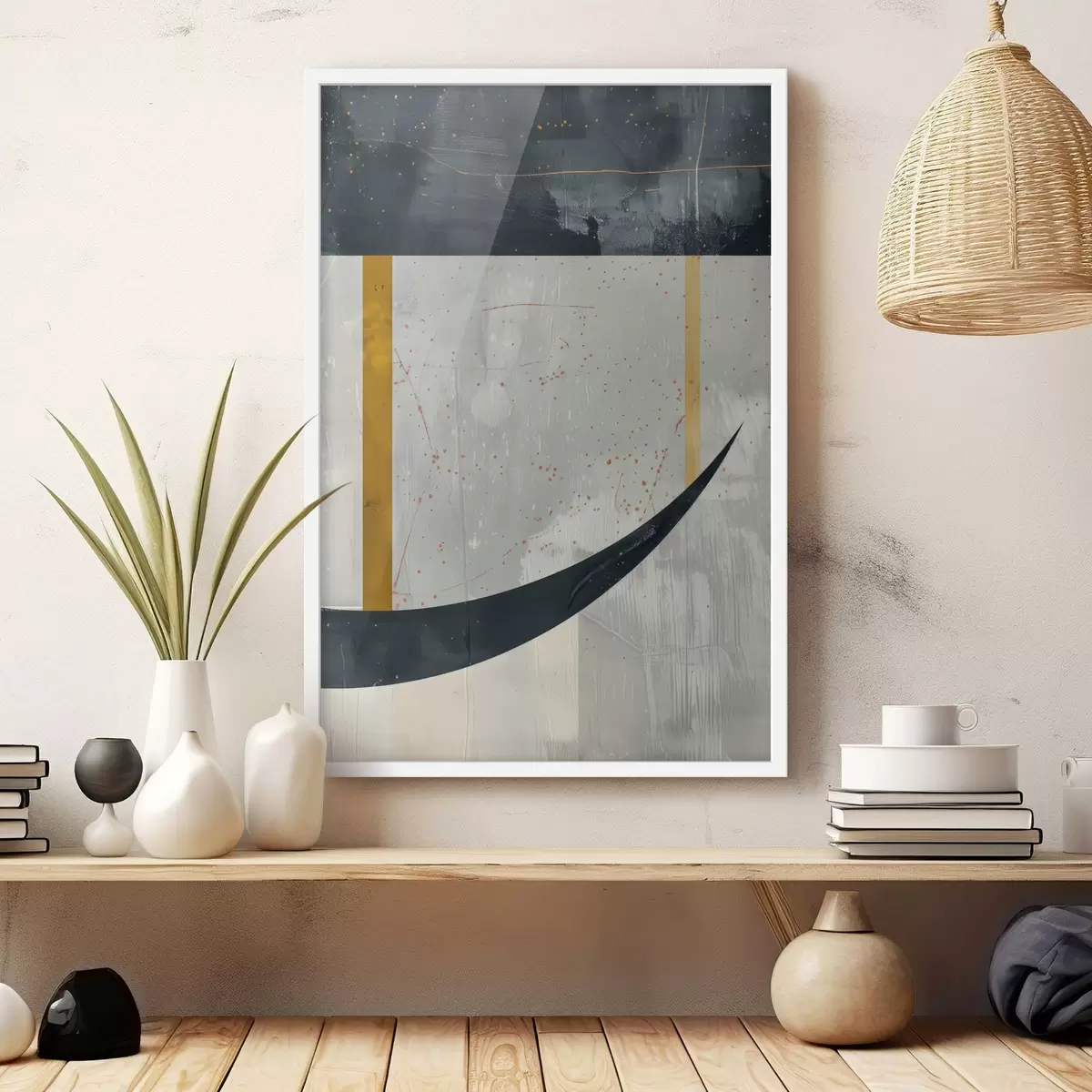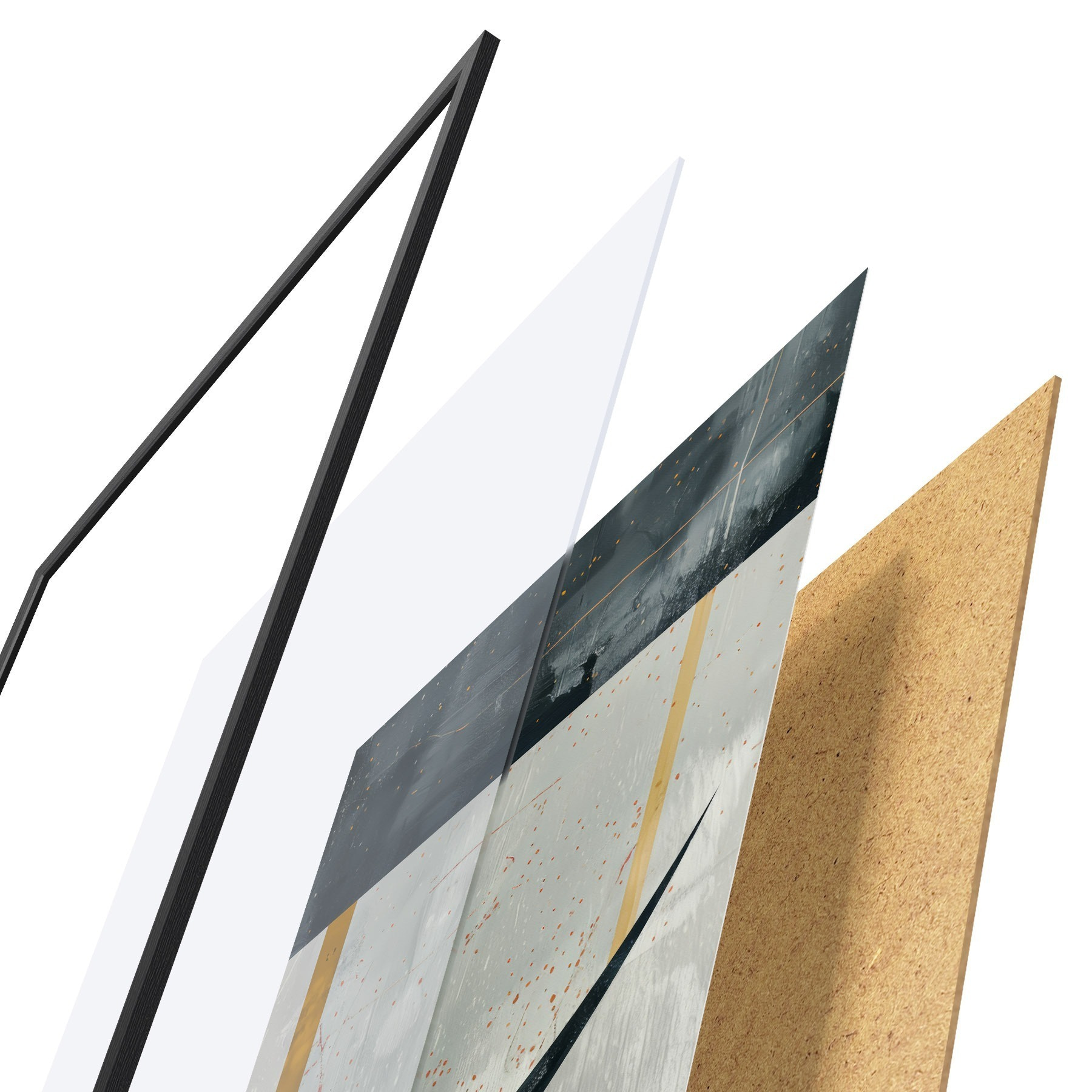 Plagát sa skladá z rámu, plexiskla, vytlačeného obrazu a podkladu z drevotriesky. Plagát možno okamžite zavesiť na stenu vďaka úchytom na zadnej strane.