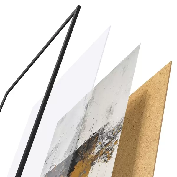 Plagát sa skladá z rámu, plexiskla, vytlačeného obrazu a podkladu z drevotriesky. Plagát možno okamžite zavesiť na stenu vďaka úchytom na zadnej strane.