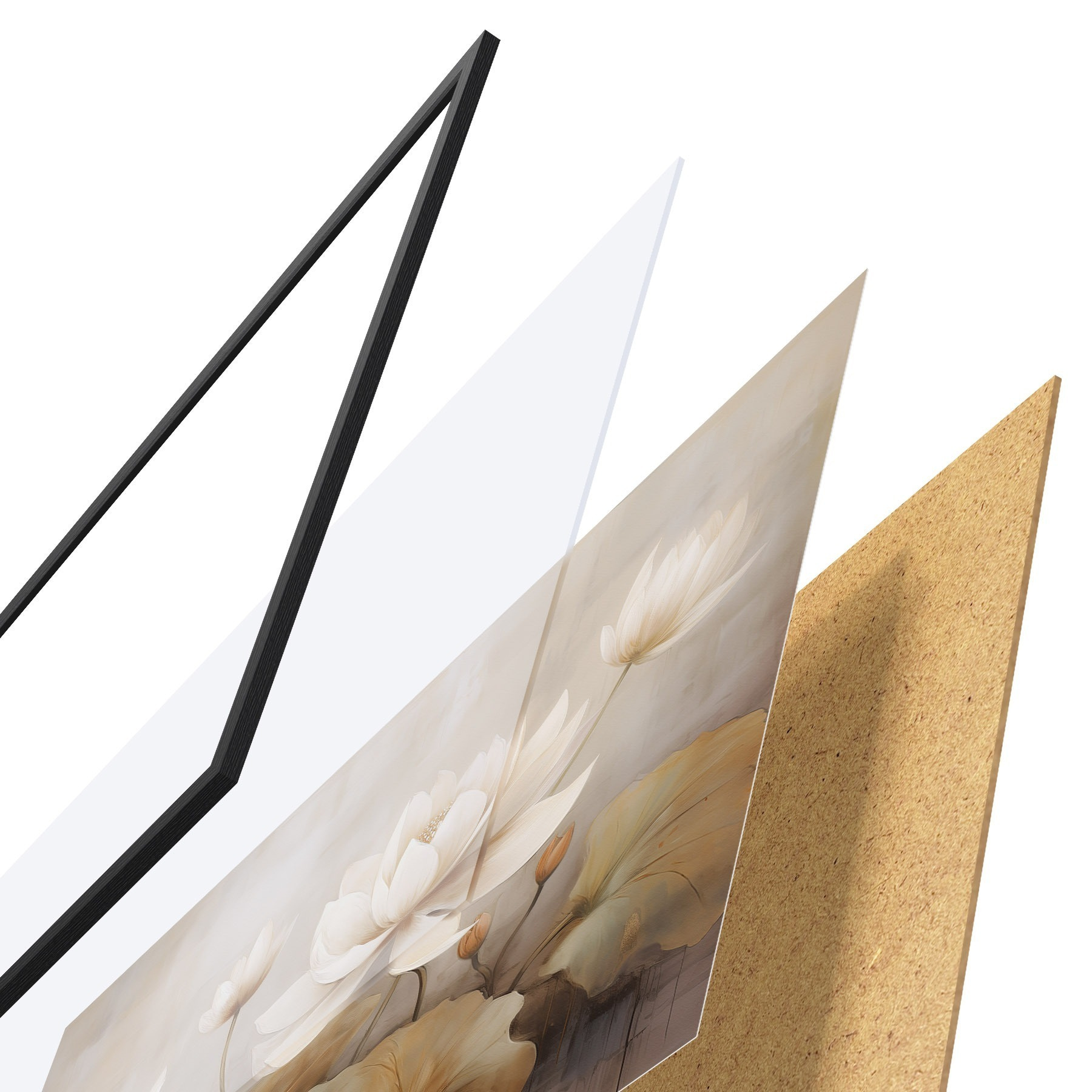 Plagát sa skladá z rámu, plexiskla, vytlačeného obrazu a podkladu z drevotriesky. Plagát možno okamžite zavesiť na stenu vďaka úchytom na zadnej strane.