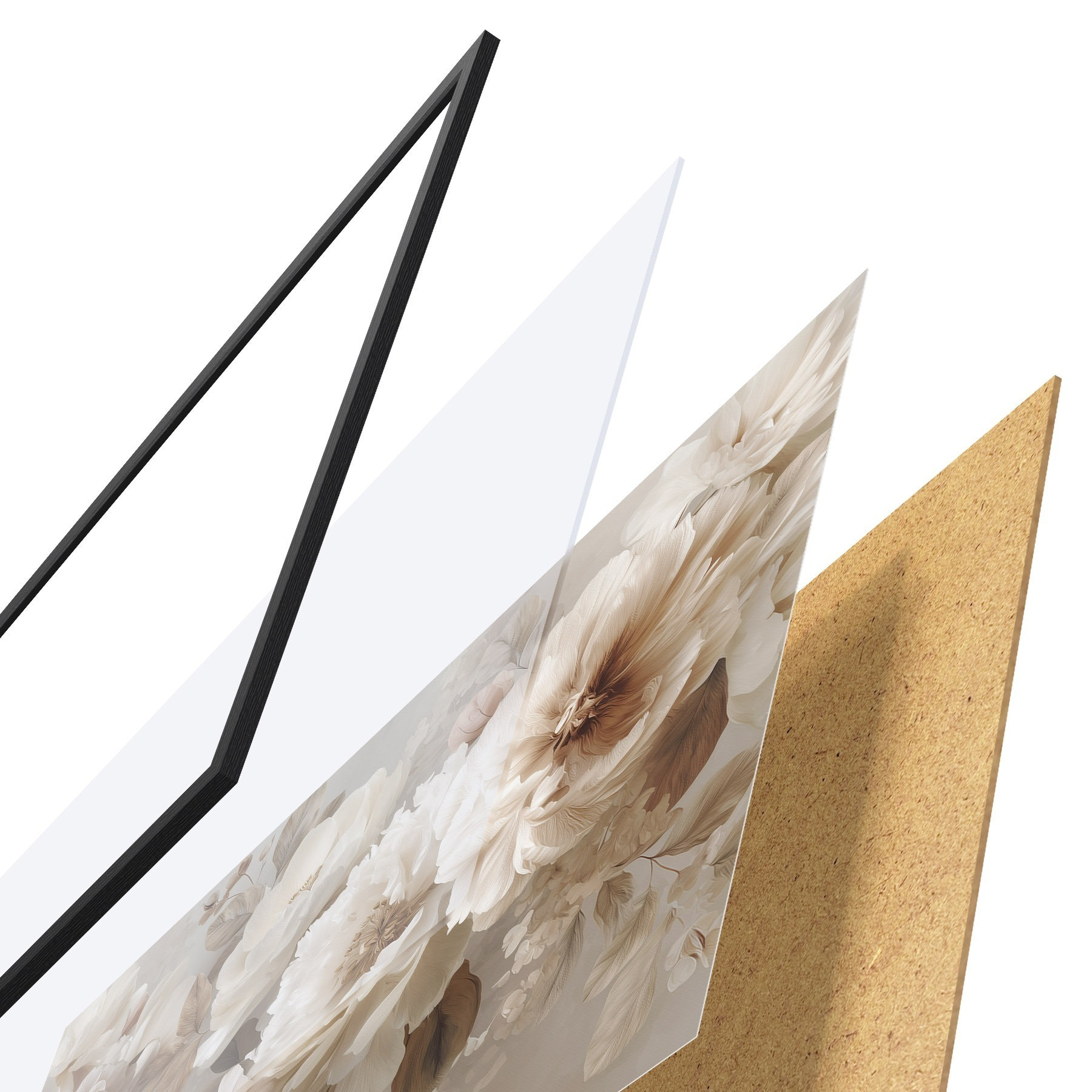 Plagát sa skladá z rámu, plexiskla, vytlačeného obrazu a podkladu z drevotriesky. Plagát možno okamžite zavesiť na stenu vďaka úchytom na zadnej strane.