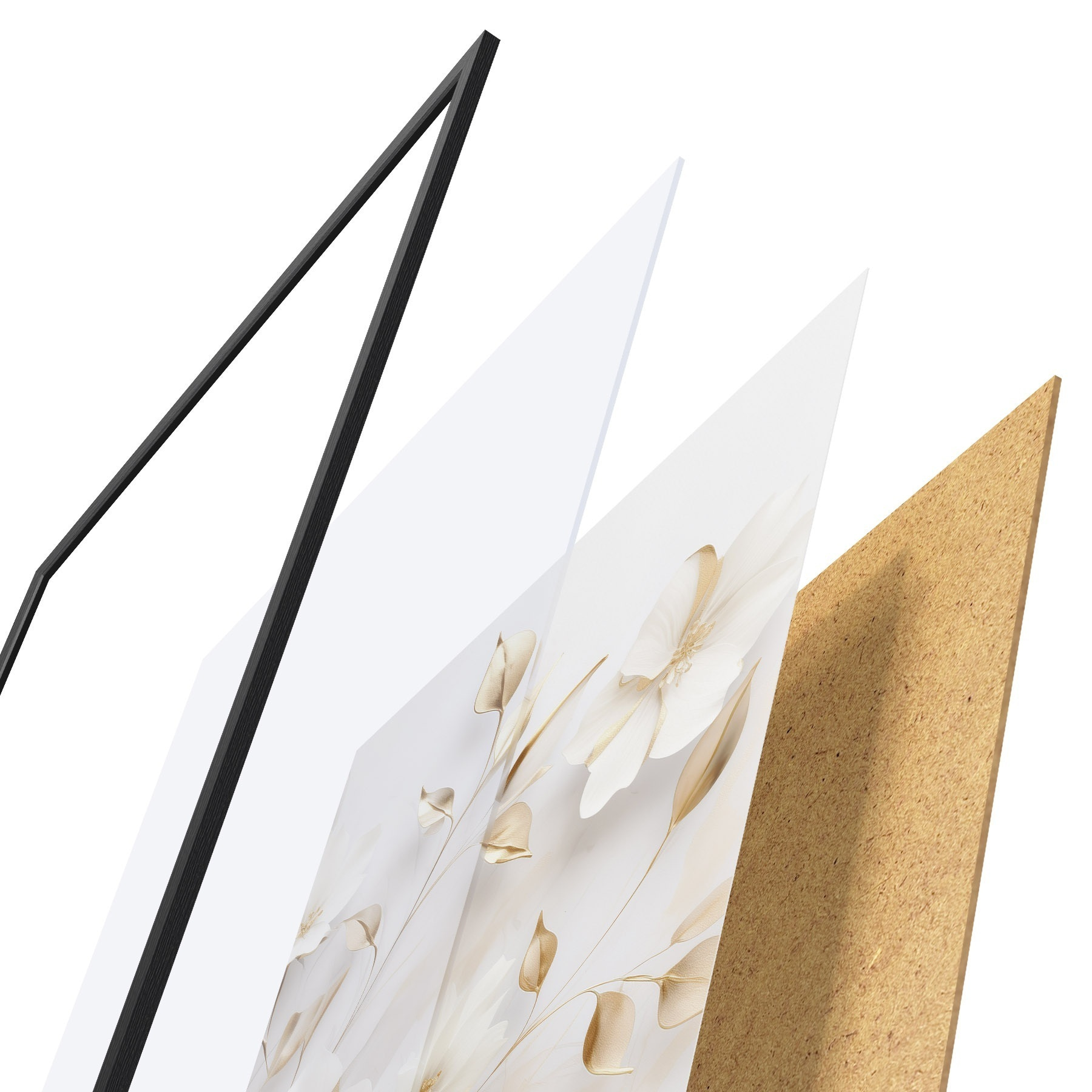 Plagát sa skladá z rámu, plexiskla, vytlačeného obrazu a podkladu z drevotriesky. Plagát možno okamžite zavesiť na stenu vďaka úchytom na zadnej strane.