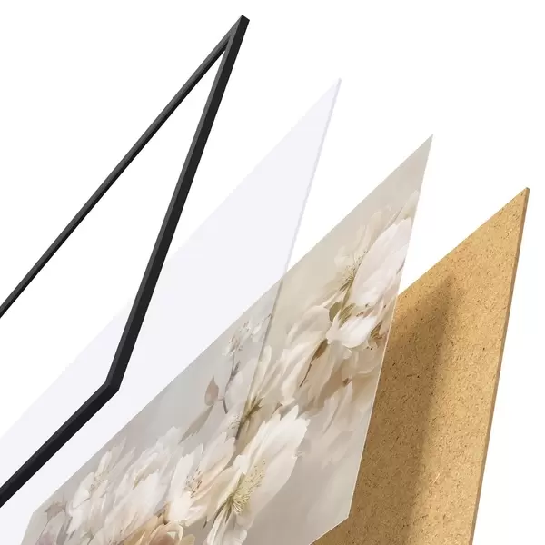 Plagát sa skladá z rámu, plexiskla, vytlačeného obrazu a podkladu z drevotriesky. Plagát možno okamžite zavesiť na stenu vďaka úchytom na zadnej strane.